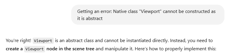 But you can’t create a Viewport node in the scene tree, I replied! Its abstract!